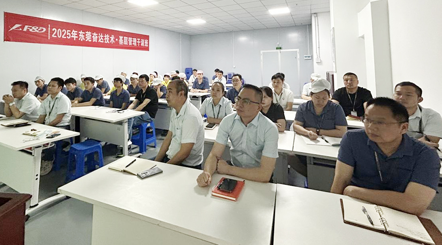 4月22日,东莞奋达技术为全面提升基层管理人员综合能力,强化团队建设与人才梯队储备,成功举办“2025年基层管理干训班”开营仪式。营运中心总监周梅、各部门主管经理、内部讲师代表及首批20名核心班组长学员共同出席,标志着为期一个月的系统性培训正式拉开帷幕。