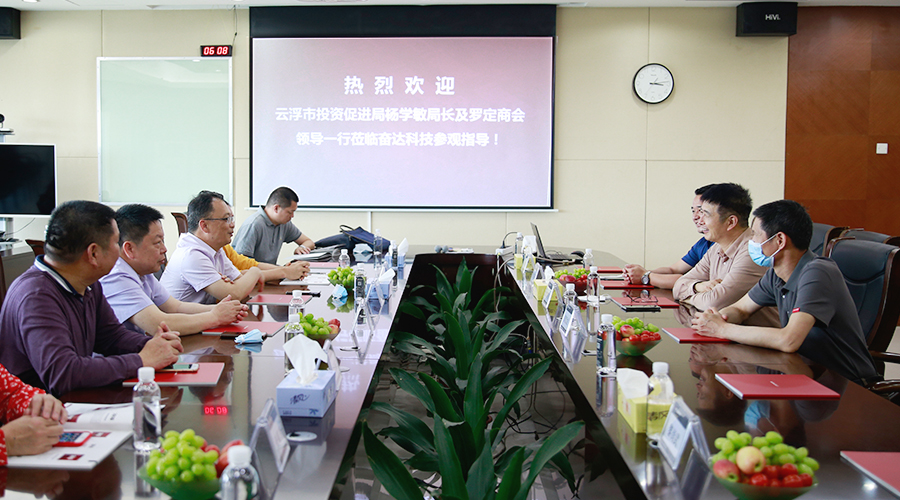 4月13日,云浮市投资促进局局长杨学敏先生一行领导莅临奋达科技总部参观指导,奋达科技办公室总监郭雪松先生等陪同考察并与会沟通。