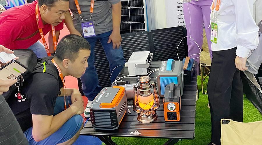露营的时候想看电影?投影功能安排!想听音乐?AI智能音箱安排!担心电量不够?便携式光伏太阳能板安排!你和你的小伙伴们想同时充电?10台设备同时支持用电安排!这就是本届东博会上奋达科技推出的重磅新品——AI便携式储能电源PH2380。