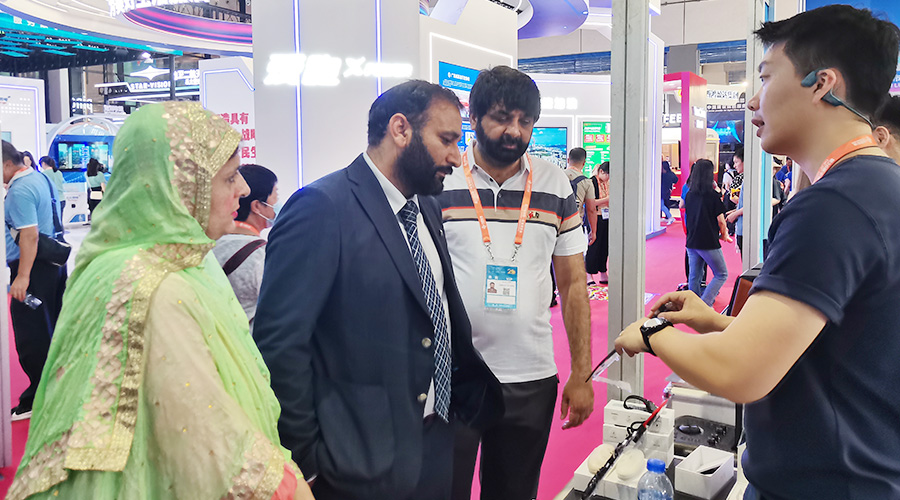 将投影、音箱、AI语音集合在一起的便携式储能电源PH2380在展会上可谓是独一份,该产品也作为本届东博会最具创意的代表性产品之一在深圳馆区综合展览区域展出,是展会上当仁不让的人气新品,吸引了不少领导、客户们前来体验和询问。期间,深圳市副市长张华女士特意来到奋达科技展位上进行调研视察,除此之外,印尼公共气象服务中心负责人、缅甸政府代表团等领导都莅临奋达科技的展位进行体验和参观。