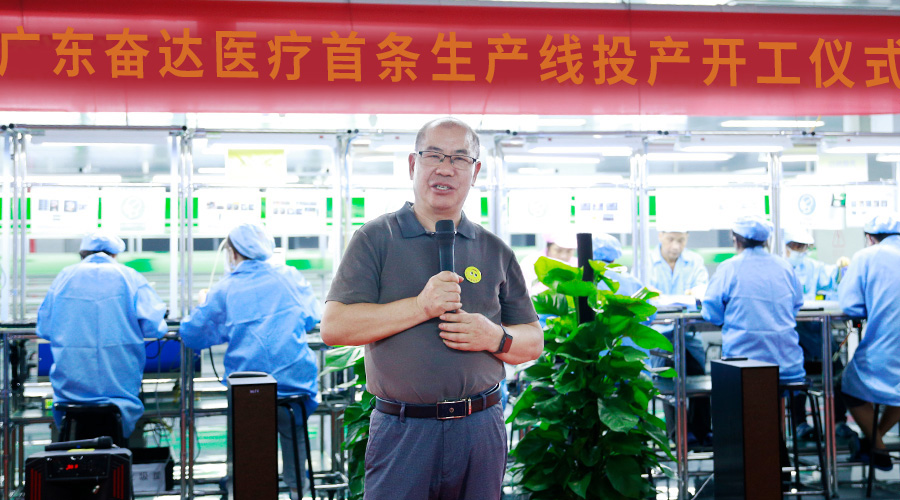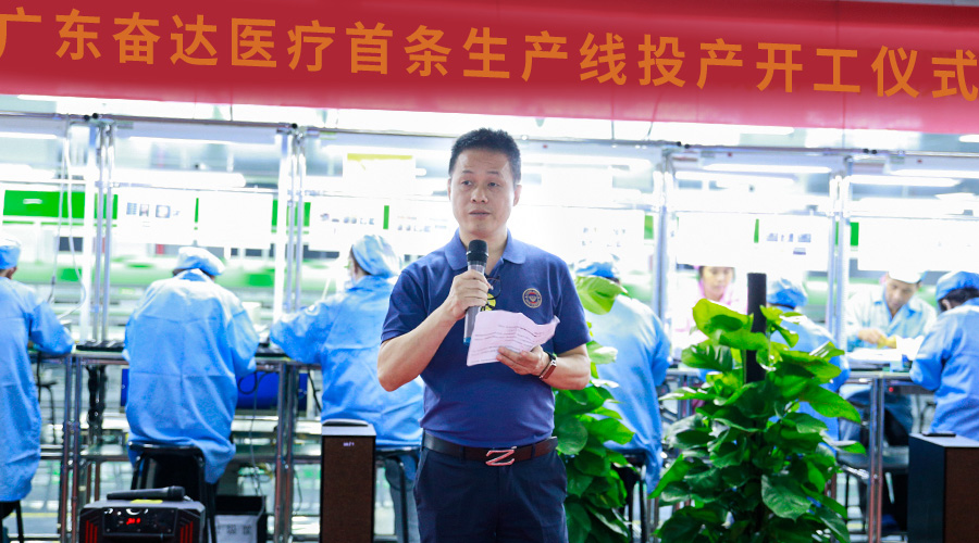 仪式最后,奋达科技董事肖晓先生代表公司管理层及智能家居事业部祝贺广东奋达医疗首条生产线顺利投产,希望在未来发展中,能够更上一层楼,取得新的成就。