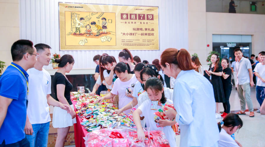 奋达科技“拾忆童年,重返7岁”主题活动在办公楼一楼大堂举行。奋达科技作为一家成立28年的大型上市公司,始终秉承“尊重、诚信、创新,成就客户、成就企业、成就员工”的企业核心价值观,打造特色的企业文化。